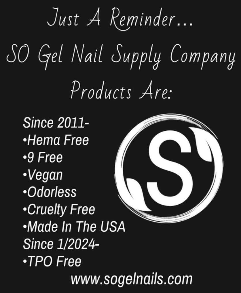 In today’s nail industry, the rise of allergies and sensitivities makes offering safer alternatives more important than ever. That’s why our SO Gel Hard Gel System is a game-changer. Made in the USA since 2011, our products are Hema-free, TPO free, vegan, cruelty-free, odorless, and cost-effective with our 5+ year shelf life—ensuring you can provide your clients with the highest-quality, safer nail solutions.